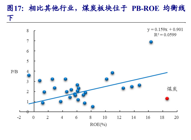 2.3、 从 PB-ROE 看,煤炭行业估值明显折价