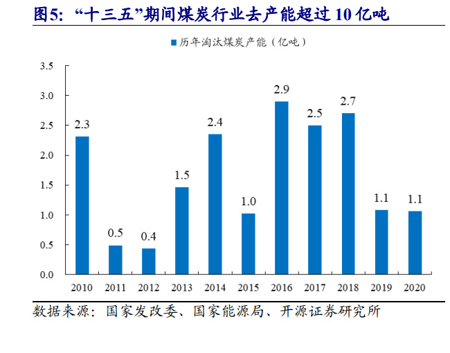 供给侧改革步伐不会倒退。当前煤炭行业高景气,与“十三五”期间煤炭供给侧 改革密切相关。煤炭行业是供给侧改革的主要领域之一,“十三五”期 间煤炭行业供给侧改革成效明显,五年内累计淘汰落后煤炭产能超过 10 亿吨,淘 汰煤矿数量一半以上,超额完成 2016 年提出的化解过剩产能目标。国务院在 2014 年发布的《能源发展战略行动计划 (2014-2020 年)》中确定,将重点建设晋北、晋 中、晋东、神东、陕北、黄陇、宁东、鲁西、两淮、云贵、冀中、河南、内蒙古东 部、新疆等 14 个亿吨级大型煤炭基地。2021 年,晋陕蒙新四个省煤炭产量占全国 总产量的 81%,国内煤炭产能进一步向晋陕蒙新地区集中,煤炭行业大型化、集约 化趋势明显。煤炭行业供给侧改革成效显著,并得到认可,当期煤炭行业享受供给 侧改革红利,供给侧改革步伐不会倒退,这决定了煤炭行业新建产能或无法大规模 释放,煤炭行业新的产能周期将无法顺利开启。