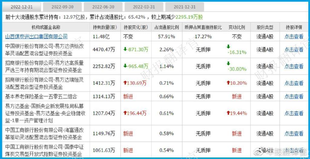 大家好我是财报翻译官,今天将调研A股煤炭概念板块中,山煤国际(股票代码:600546)这家上市公司2022年第四季度财报,下面进入今天的主题。