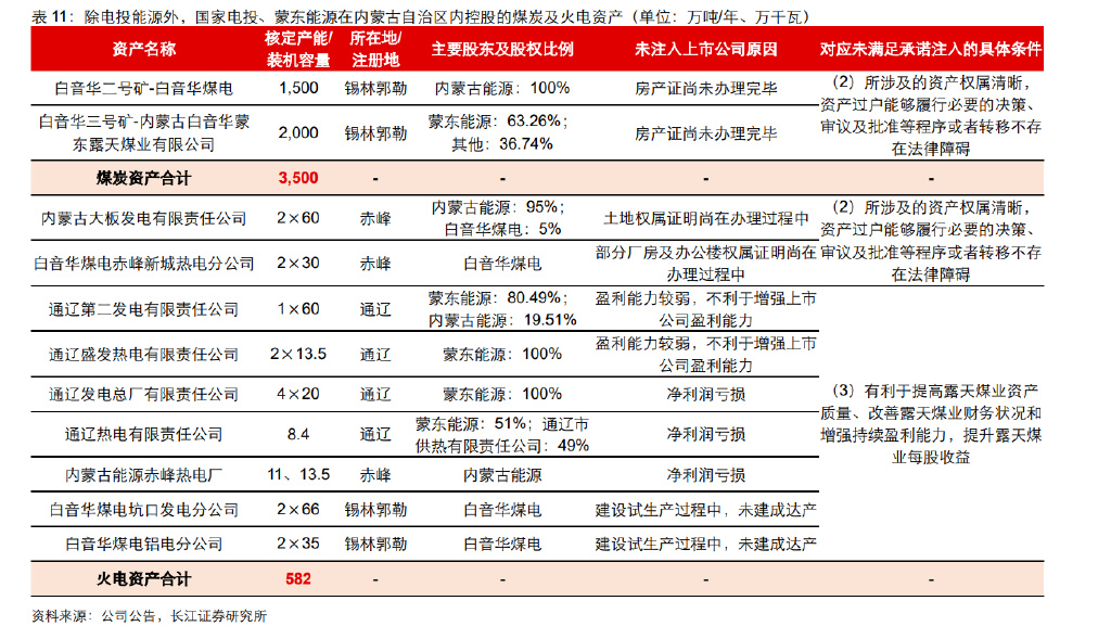 集团:待证券化煤炭产能合计 3500 万吨/年、火电装机容量 582 万千瓦