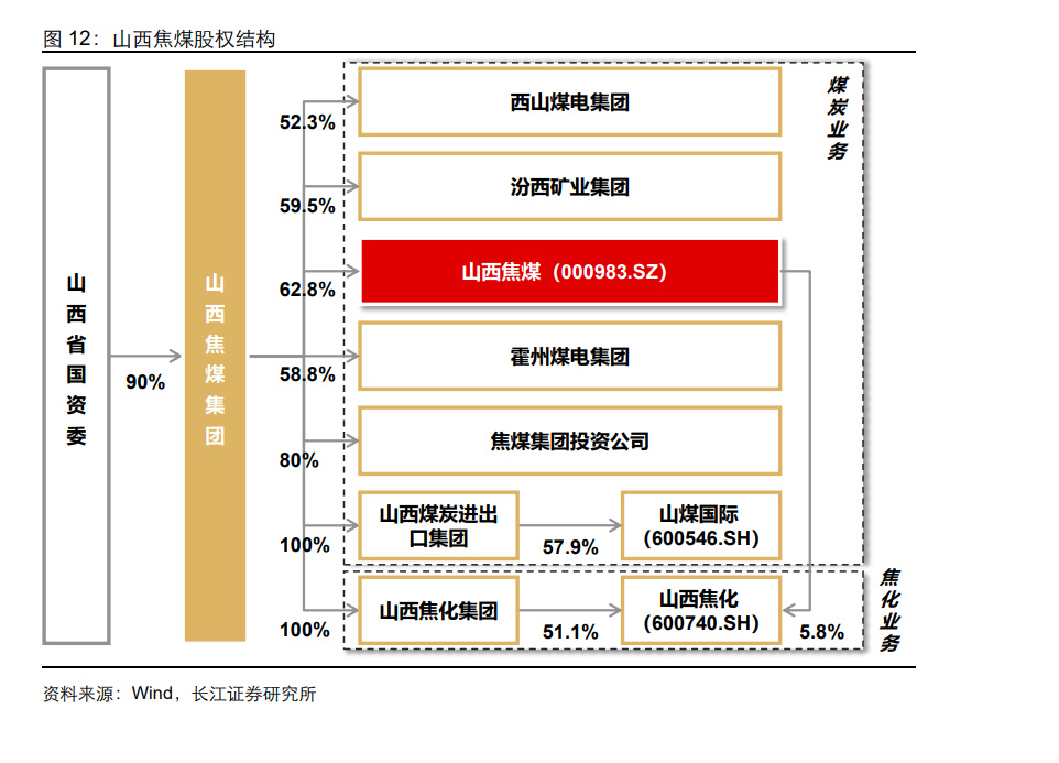 山西焦煤集团组建于 2001 年 10 月,总部位于山西省会太原市,目前主要开采的西山、 霍西、河东、沁水、宁武等煤田地处山西省晋中地区,是我国最大的优质炼焦煤生产基 地。2021 年随着山煤集团纳入合并范围,山西焦煤集团成为全国最大焦煤生产商,下 有焦煤股份、西山煤电、汾西矿业、霍州煤电等 23 个子分公司,拥有山西焦煤能源集 团股份有限公司、山煤国际能源集团股份有限公司、山西焦化股份有限公司 3 个 A 股上 市公司,其中山西焦煤是集团焦煤资源整合上市平台。