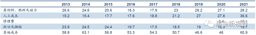 根据上市公司年报披露,2019-2021年,公司原煤营业成本从228.57涨至257.34元/吨,主要是原料动力和员工薪酬分别上涨了6.62和19.28元/吨。