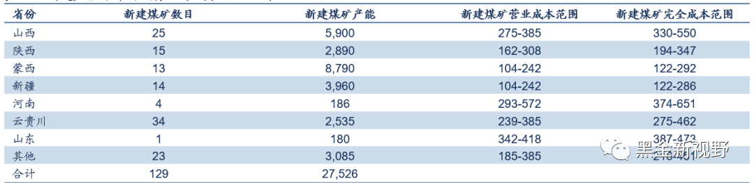 表34:新建产能分布与测算吨煤成本(万吨/年,元/吨)