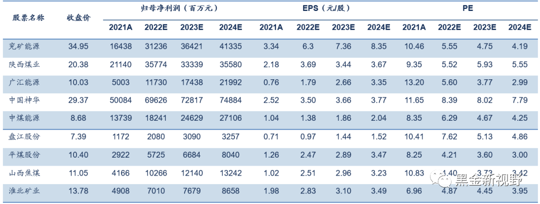 结合能源产能周期的研判,我们认为在全国煤炭增产保供的形势下,煤炭供给偏紧、趋紧形势或将持续整个“十四五”乃至“十五五”,亟待新建一批优质产能以保障我国中长期能源煤炭需求。在能源市场化改革进程中,煤价中枢亦有望逐步抬升以反映供需趋紧的形势并改善煤企扩产盈利预期,进而使得优质产能煤矿盈利的高确定性愈加凸显。当前,煤炭板块具有高业绩、高现金、高分红属性,叠加行业高景气、长周期、高壁垒特征,以及极低的估值水平和严重的一二级估值倒挂,更加彰显高性价比,具备良好的中长期投资价值。我们继续全面看多煤炭板块,继续建议关注煤炭的历史性配置机遇。自下而上重点关注三条主线:一是内生外延增长空间大、资源禀赋优的兖矿能源、陕西煤业、广汇能源等;二是在央企控股上市公司质量提升工作推动与“中特估”背景下资产价值重估提升空间大的煤炭央企中国神华、中煤能源等;三是全球资源特殊稀缺的优质炼焦公司淮北矿业、盘江股份、山西焦煤、平煤股份等。同时,建议关注布局新一轮产能周期下煤炭生产建设领域的相关机会,如天地科技等。