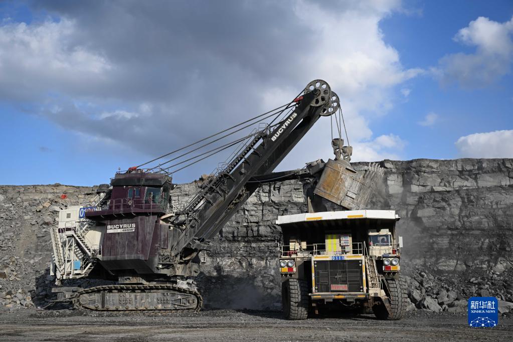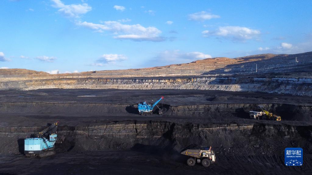 4月6日,在位于准格尔旗的国家能源集团准能集团哈尔乌素露天煤矿,大型机械在进行作业。