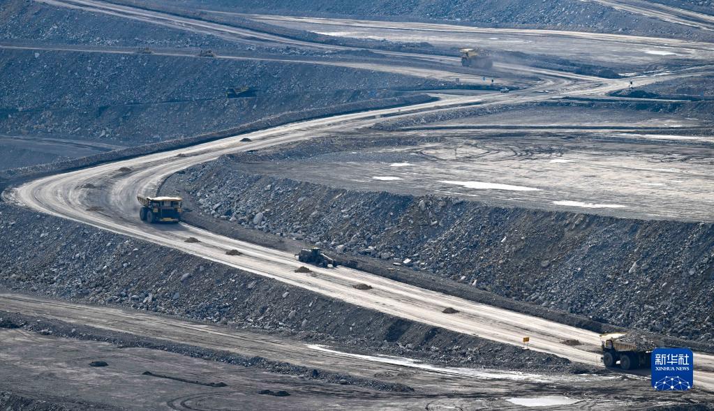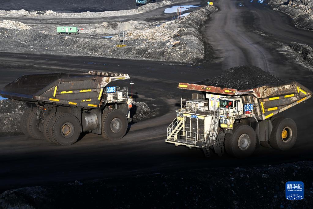 4月6日,矿车在位于准格尔旗的国家能源集团准能集团哈尔乌素露天煤矿运输煤炭。