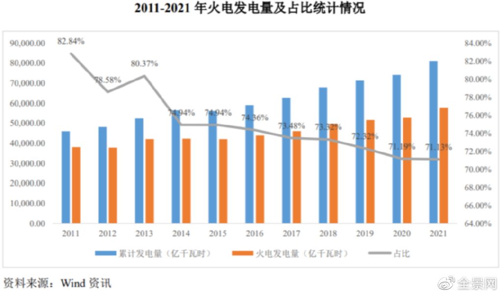 这也就是为什么,2021年火电装机容量虽然只占总装机容量的54.56%,但发电量占比却高达71.13%,火电的发电量占比要远高于装机容量的占比,依然是电源结构的主力。