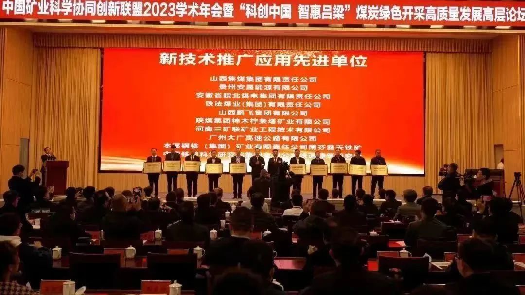 会上为“中国矿业科学协同创新联盟新技术推广应用先进单位”颁发证书会上,为荣获“中国矿业科学协同创新联盟新技术推广应用先进单位”的山西焦煤集团、山西鹏飞集团等10家企业颁发证书。