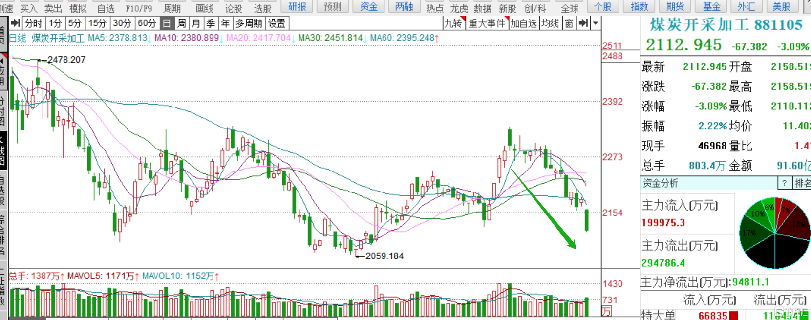 其实从同花顺的煤炭开采加工概念指数的日K线来看,板块从2月23日就开启阴跌模式,截至今日收盘,累计跌幅高达7%。