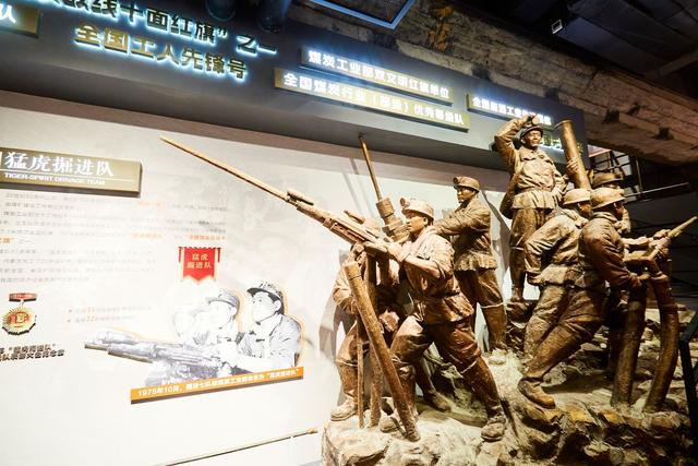 “猛虎掘进队”的铜像让人想起当年的大庆精神,铜像中的工人扛着钻机,斗志昂扬,他们不怕苦不怕累不服输,这样的精神也正是淮北工人的热血底色。