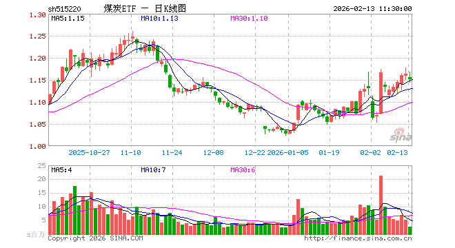 2月13日,截止午间收盘,煤炭ETF(515220)跌1.12%,报1.151元,成交额3.03亿元。煤炭ETF(515220)重仓股方面,中国神华截止午盘跌2.42%,陕西煤业跌2.44%,兖矿能源跌0.80%,中煤能源跌2.78%,山西焦煤涨0.28%,华阳股份跌1.46%,美锦能源跌1.44%,潞安环能跌1.83%,淮北矿业涨1.71%,平煤股份涨0.11%。